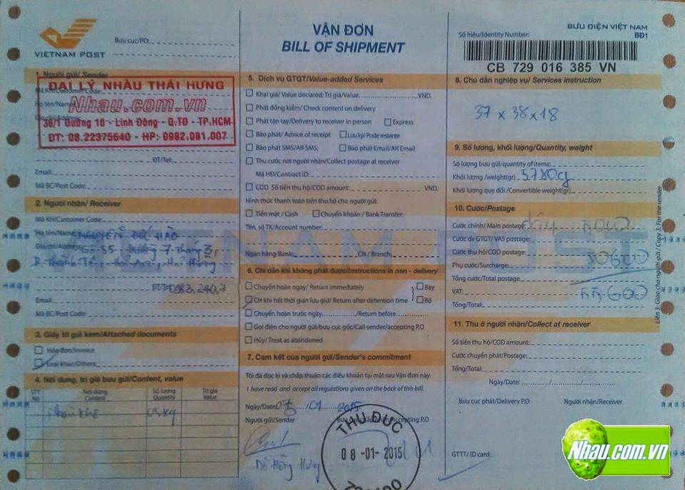 - Ngày 13/01/2015: Khách hàng: VŨ VĂN NHÀN