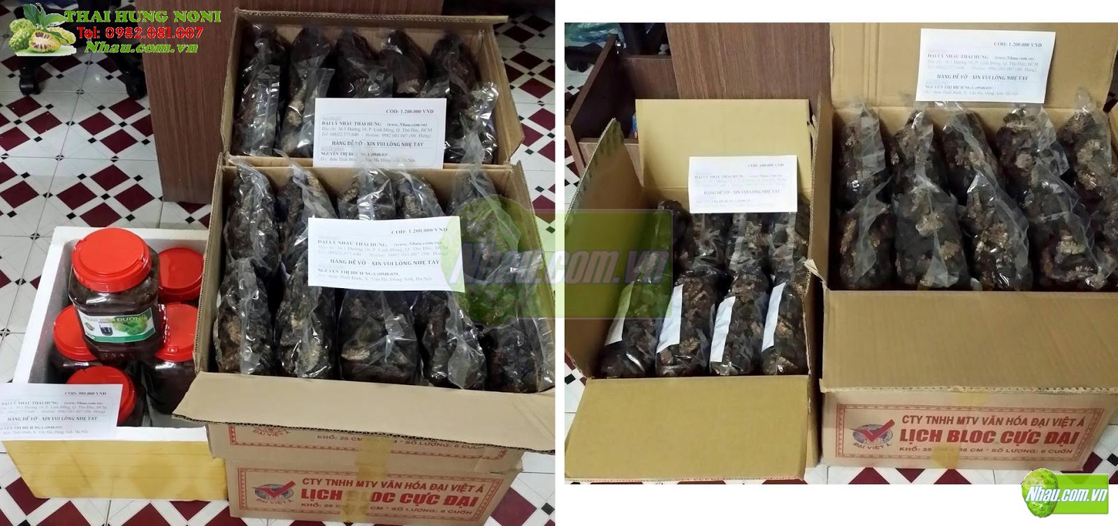 Mua: 5 Noni Juice (Nước cốt nhàu nguyên chất), 1 kg Dry Noni Fruit (Trái Nhàu Khô)