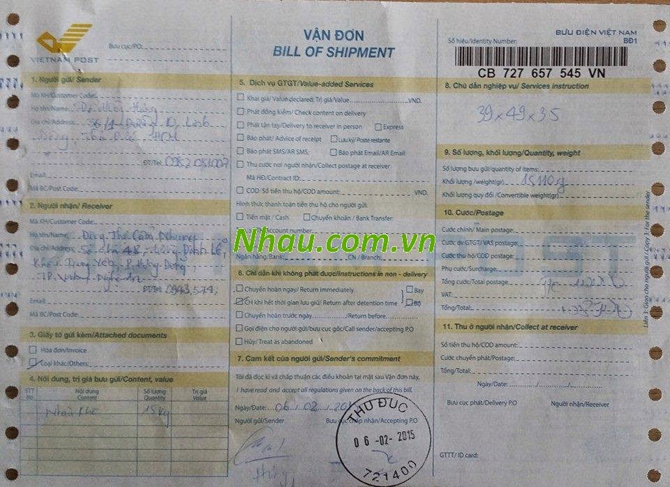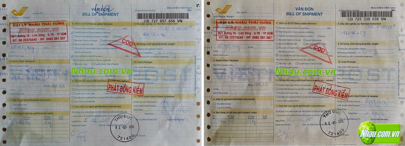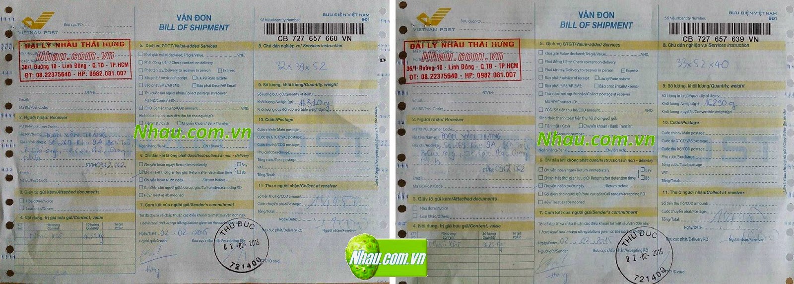 - Ngày 02/02/2015: Khách hàng: VŨ TRỌNG NAM