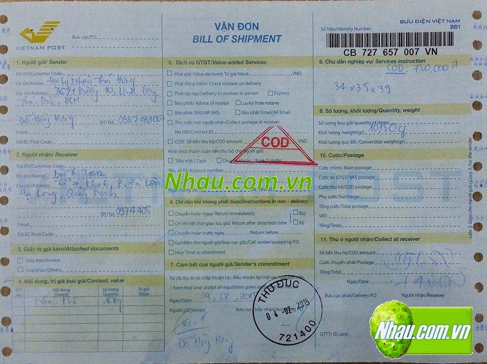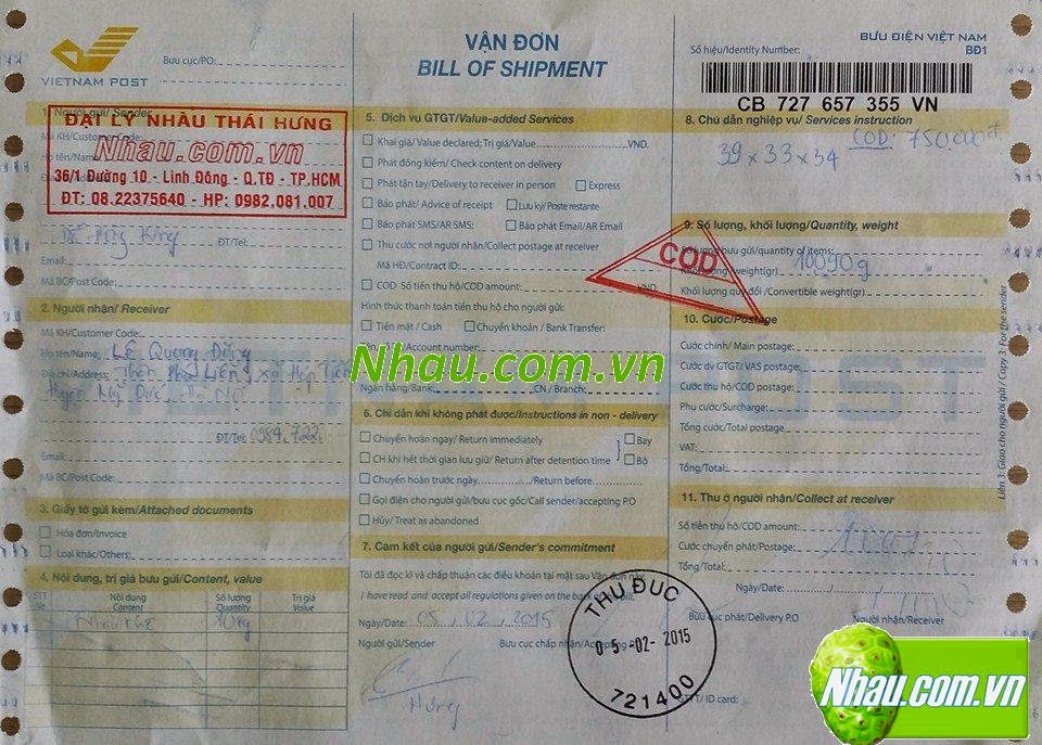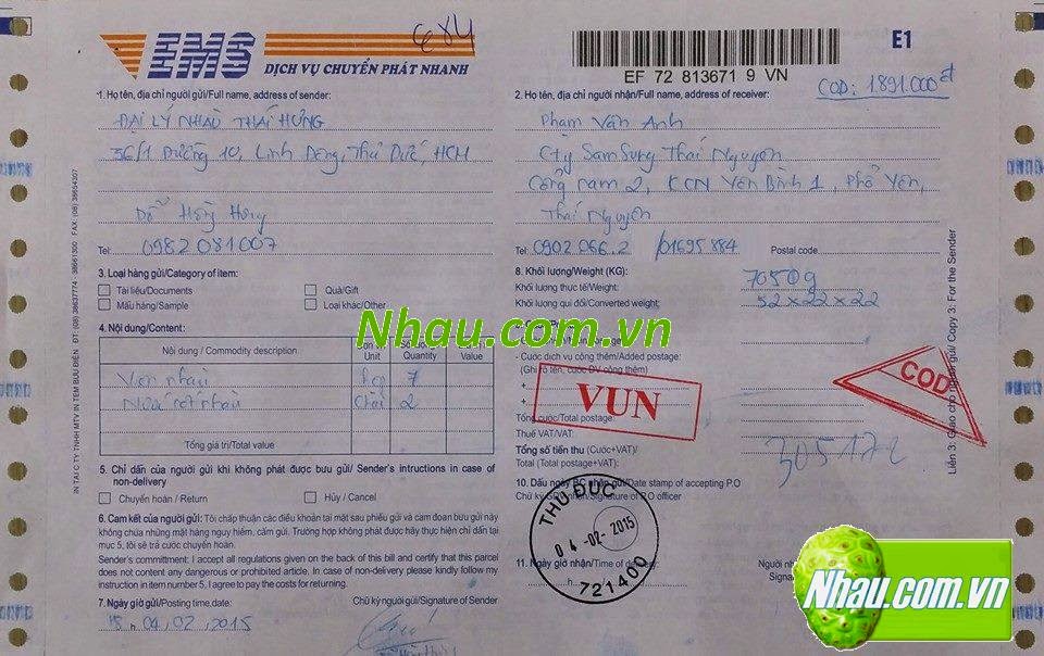 - Ngày 27/02/2015: Khách hàng: VÕ CẨM NHUNG