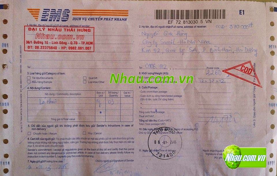- Ngày 04/03/2015: Khách hàng: PHẠM VIỆT HÙNG