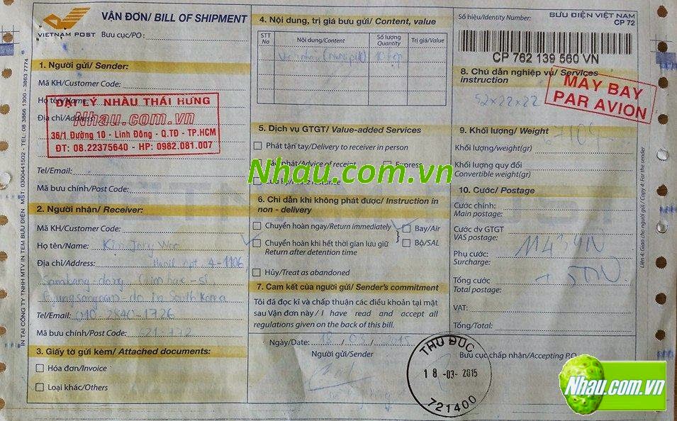 - Ngày 18/03/2015: Khách hàng: KIM JONG WOO