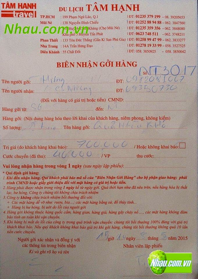 Ngày 29/05/2015: Khách hàng: NGUYỄN HẢI LAM