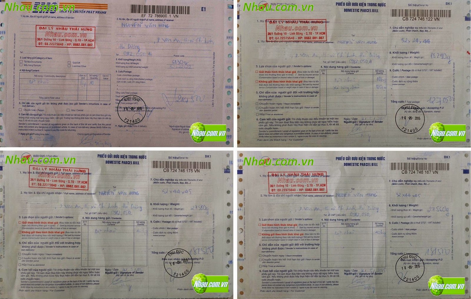 Ngày 16/05/2015: Khách hàng: NGUYỄN VĂN HÙNG