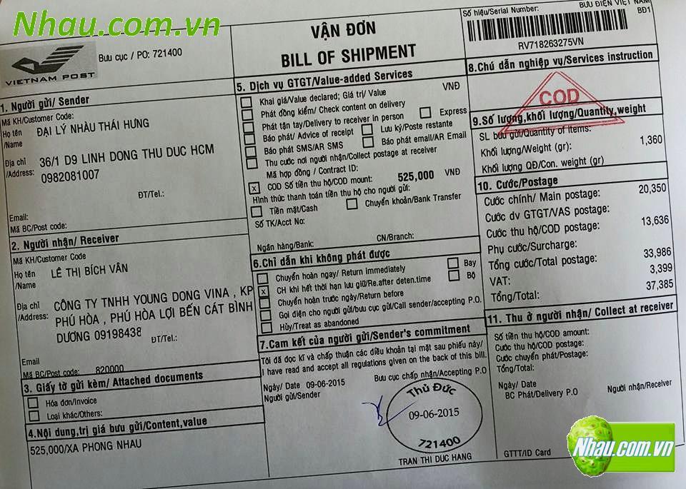 Ngày 14/06/2015: Khách hàng: NGUYỄN HÙNG VƯƠNG