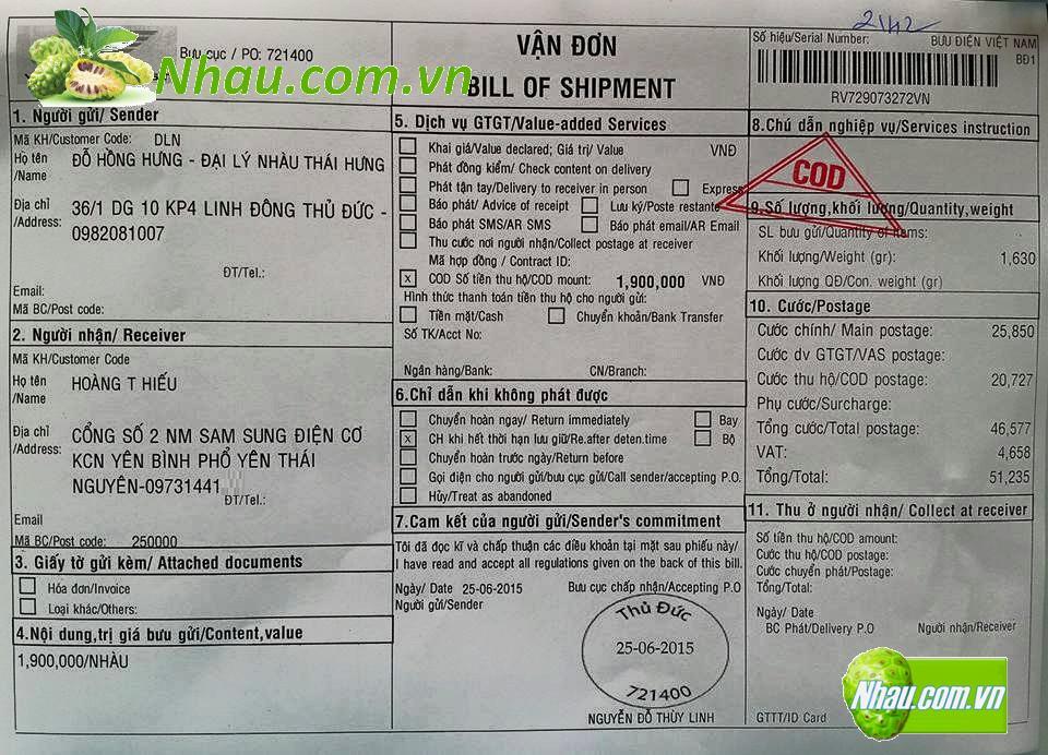 Mua: 29 hộp Bột Nhàu (Noni powder), 11 hộp Viên Nhàu (Noni pill)