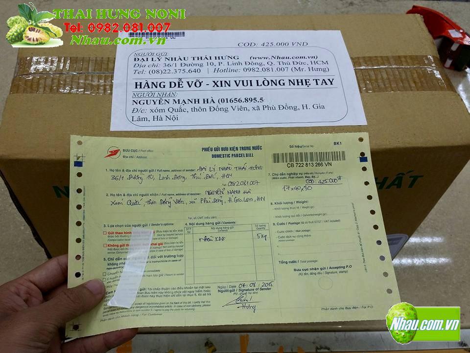 Ngày 19/08/2015: Khách hàng: NGUYỄN MẠNH HÀ