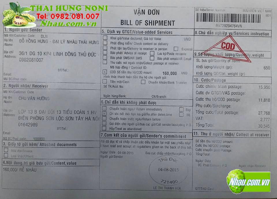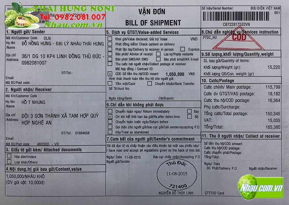Mua: 15 hộp Bột Nhàu (Noni powder), 5 hộp Viên Nhàu (Noni Pill)
