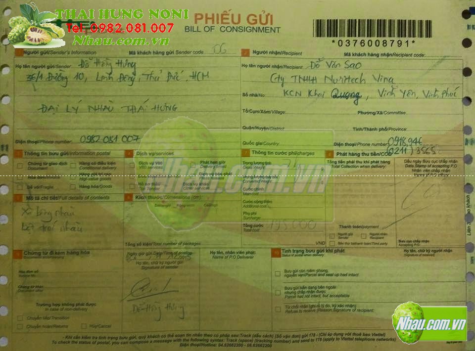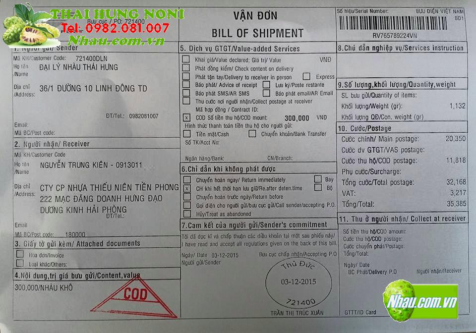 Ngày 05/12/2015: Khách hàng: ĐINH XUÂN NUÔI