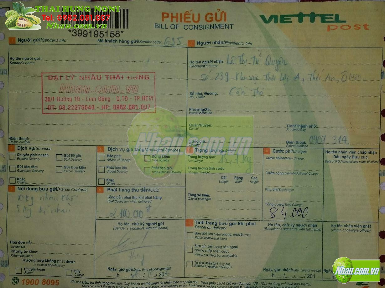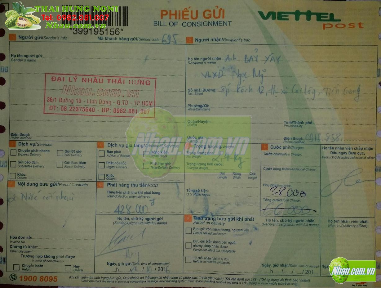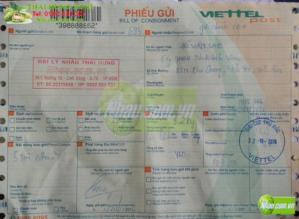 Ngày 11/10/2016: Khách hàng: NÔNG THỊ THUỶ